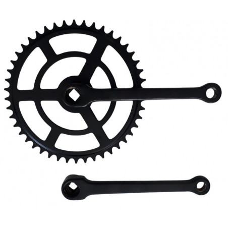 The crankset is a key component of the bike drivetrain, converting your pedaling force into rotational movement that drives the chain. The term "46-tooth" refers to the number of teeth on the chainring. The more teeth it has, the higher the gear ratio, allowing for higher speeds—provided you have the strength to push it.